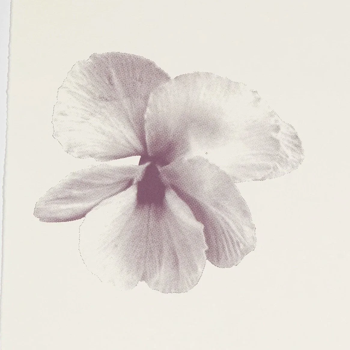 Pansies is a screenprint using a split fountain technique, in this case going from a deep purply black to transparent.